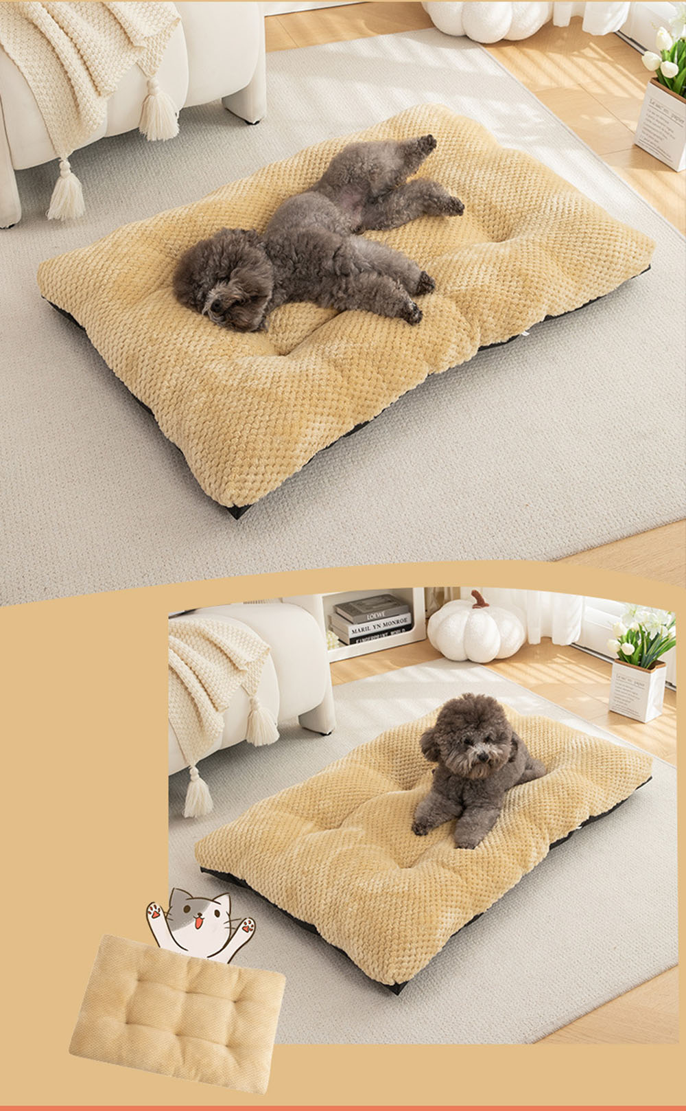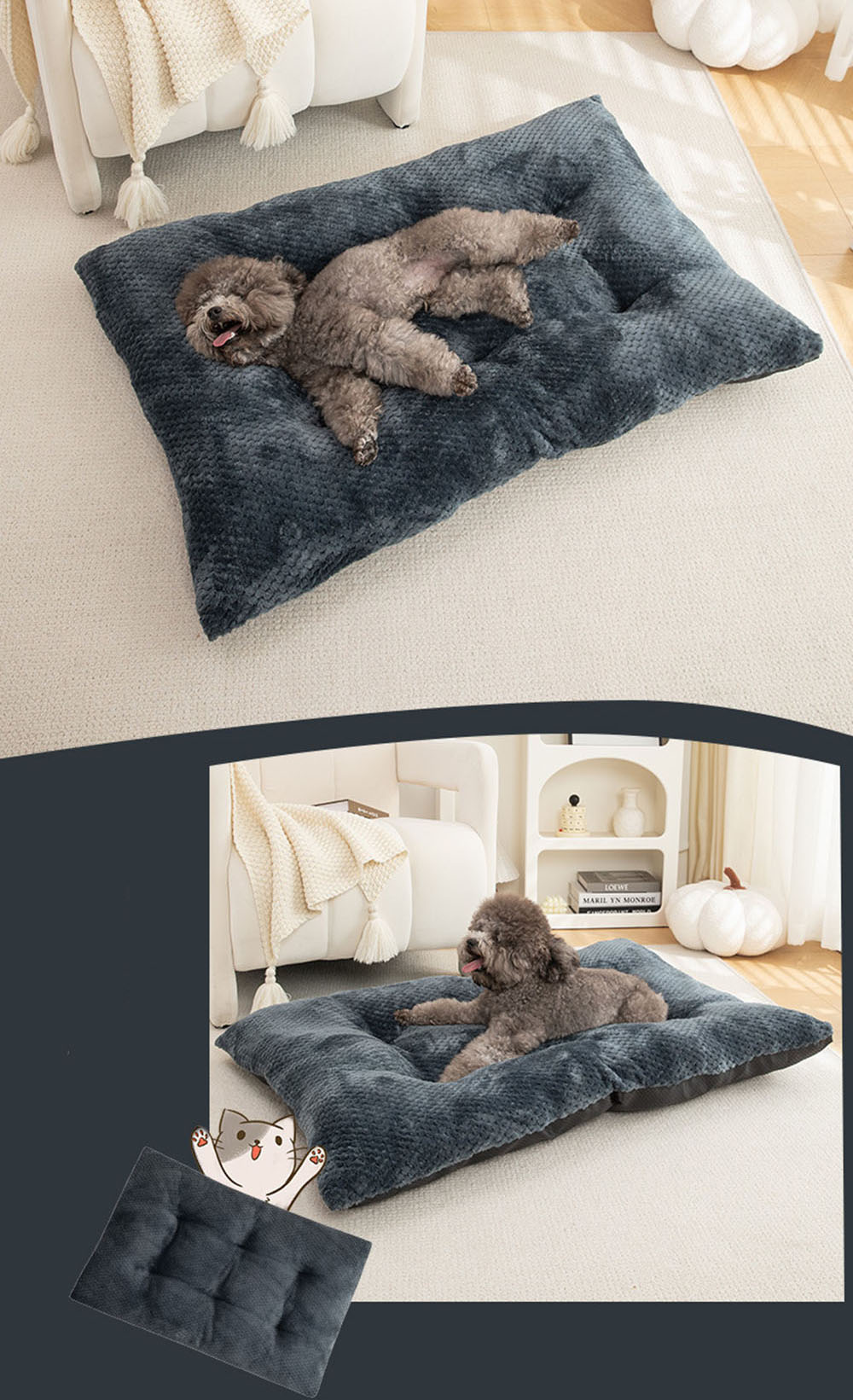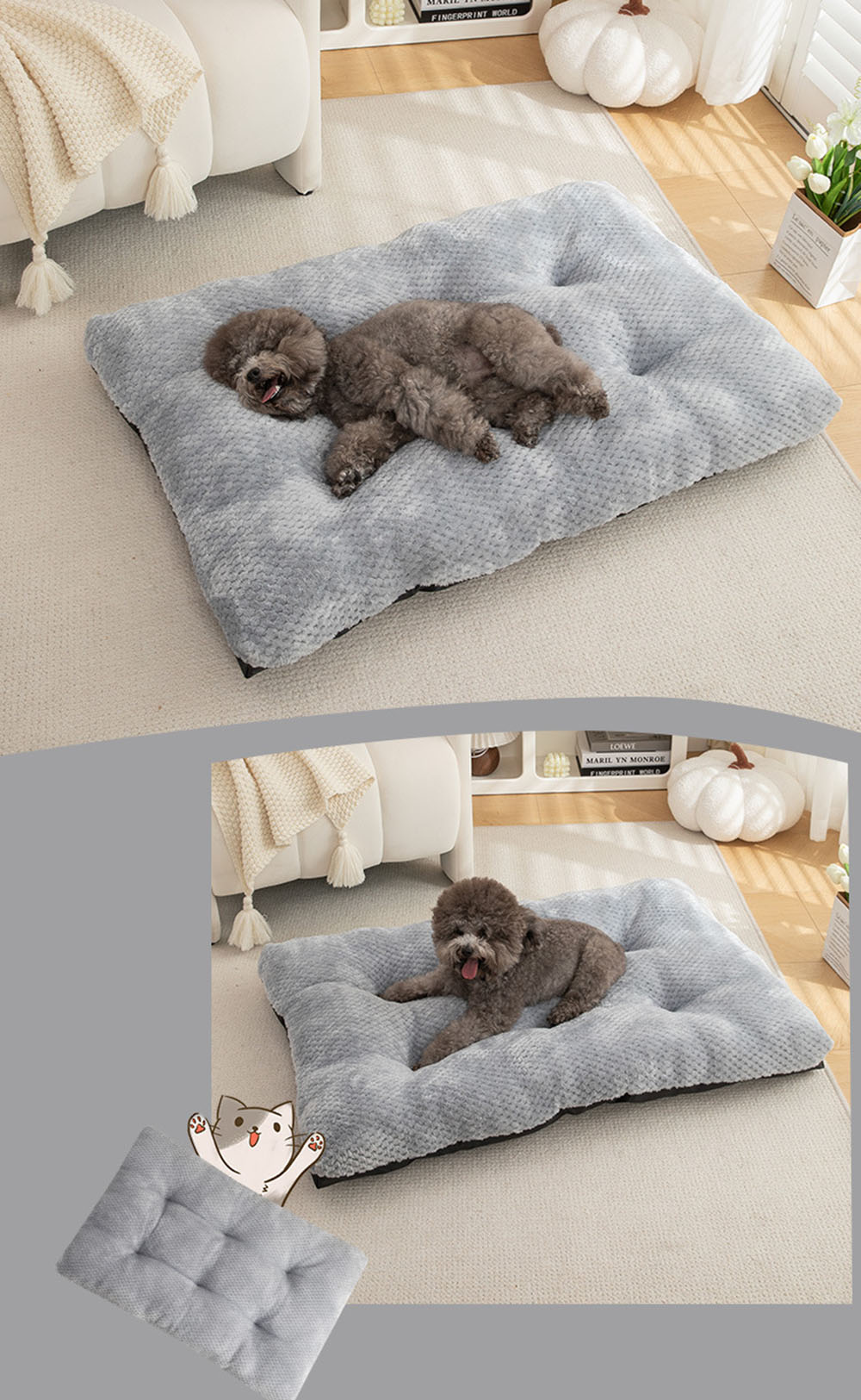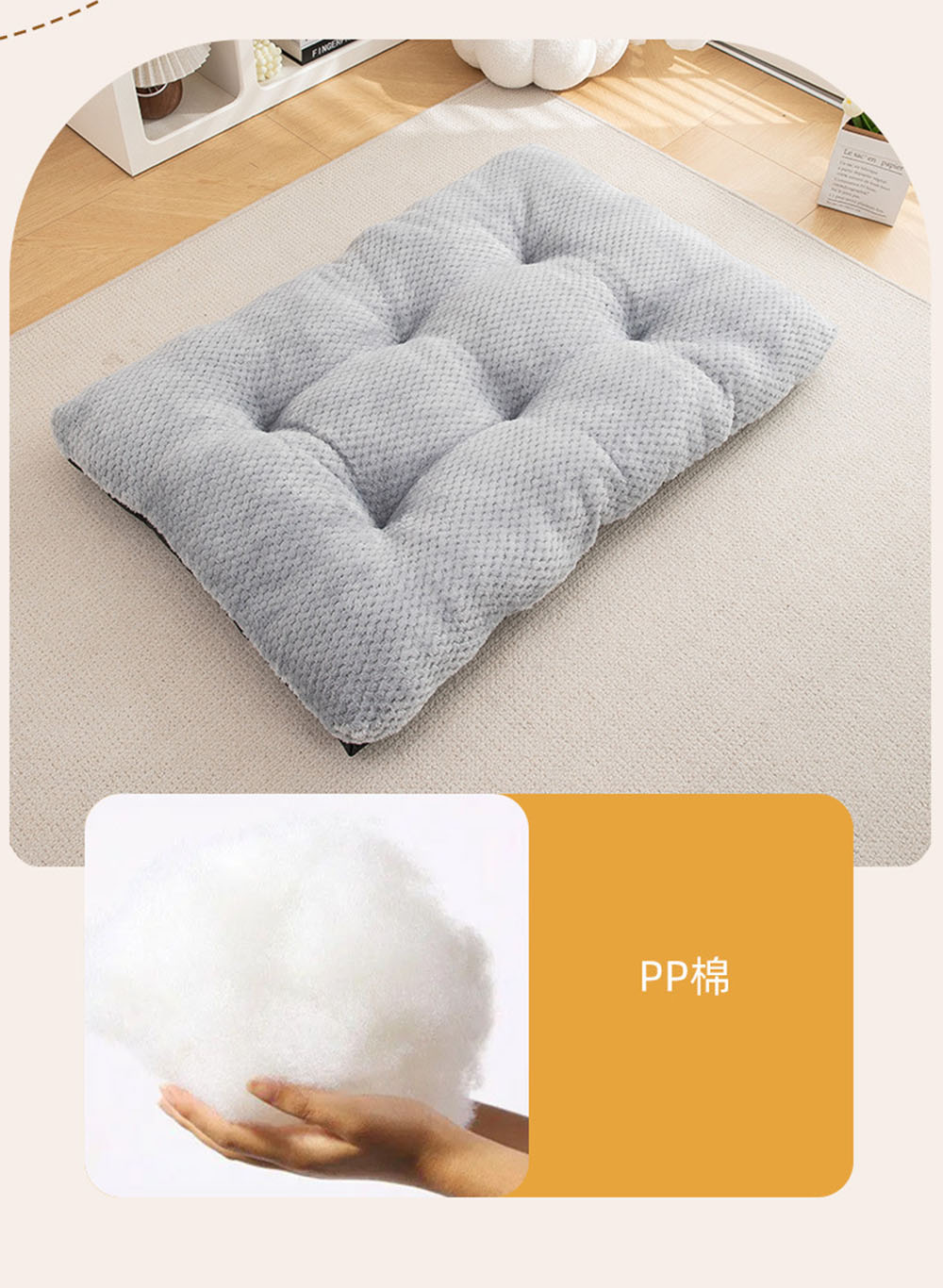 Material: polyester + oxford fabric with anti-slip bottom + pp cotton