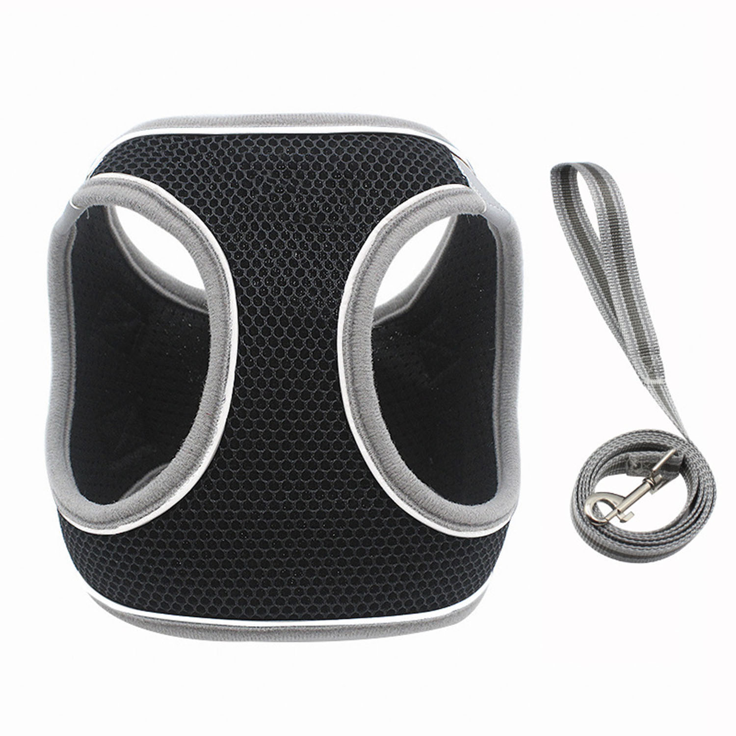 • Adjustable Reflective Mesh Dog Harness with Dog Leash Set for Secure Evening Walks